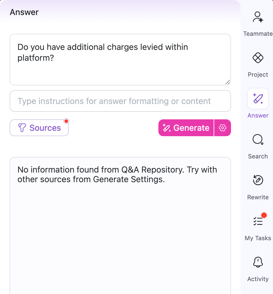 Crafts answers dynamically: The generated answers are much more than just canned responses fetched from your uploaded RFPs, sales playbooks or Q&A pairs.
