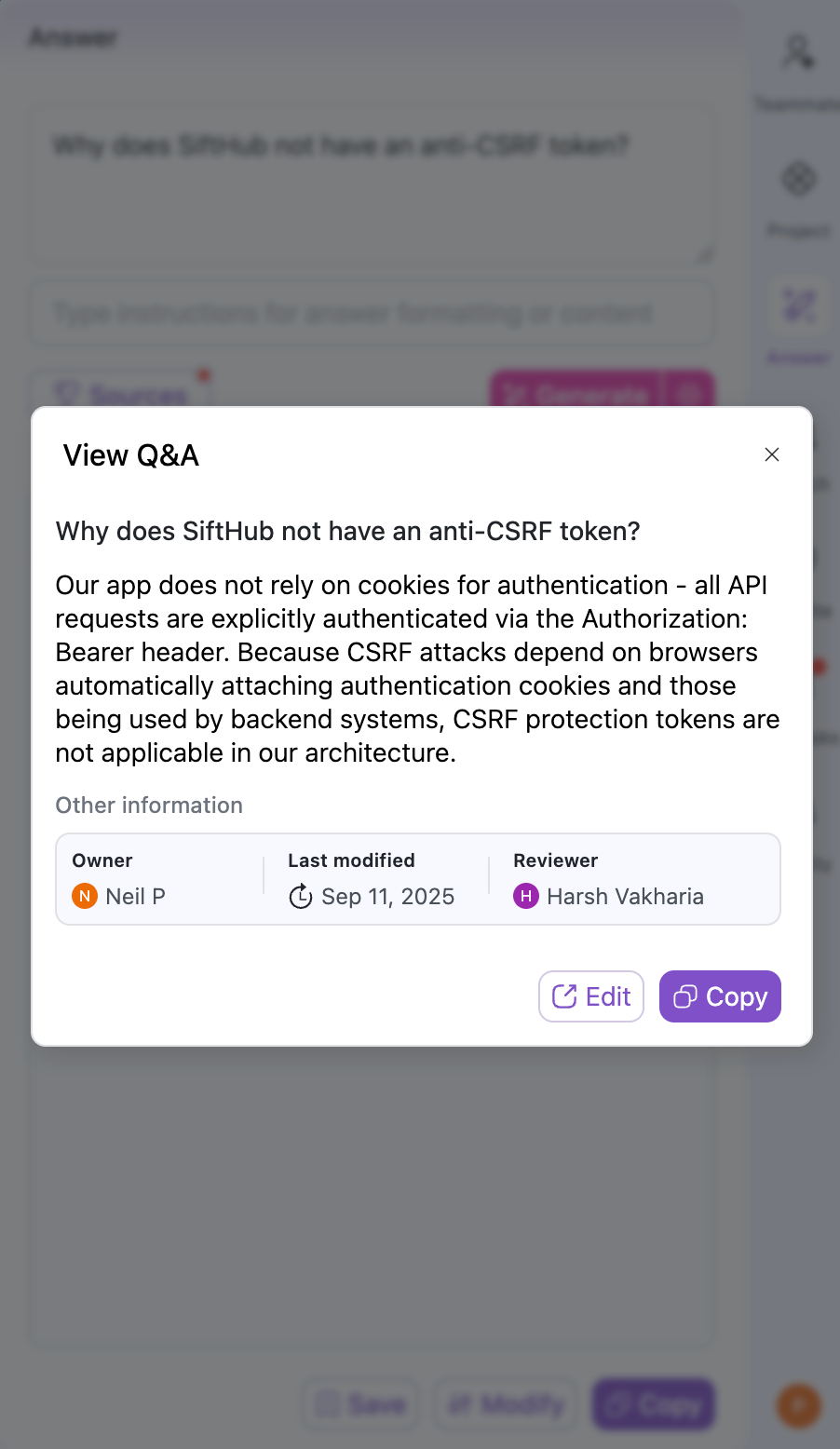 - Every answer SiftHub generates comes with complete source transparency. View the exact sources used to craft your response directly in the browser extension.