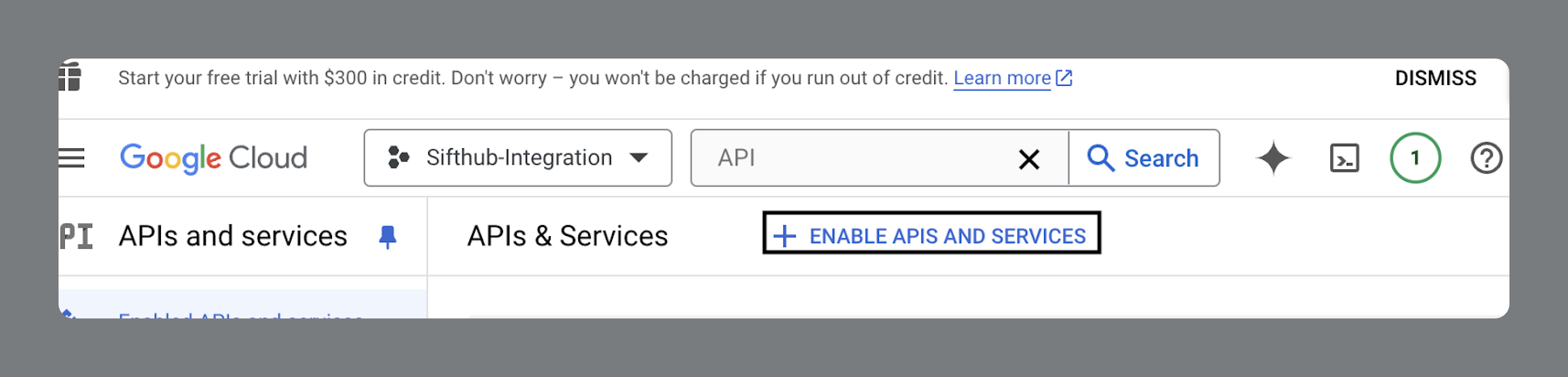 - On the APIs and Services page, click on + ENABLE APIS AND SERVICES. You will be redirected to the API Library