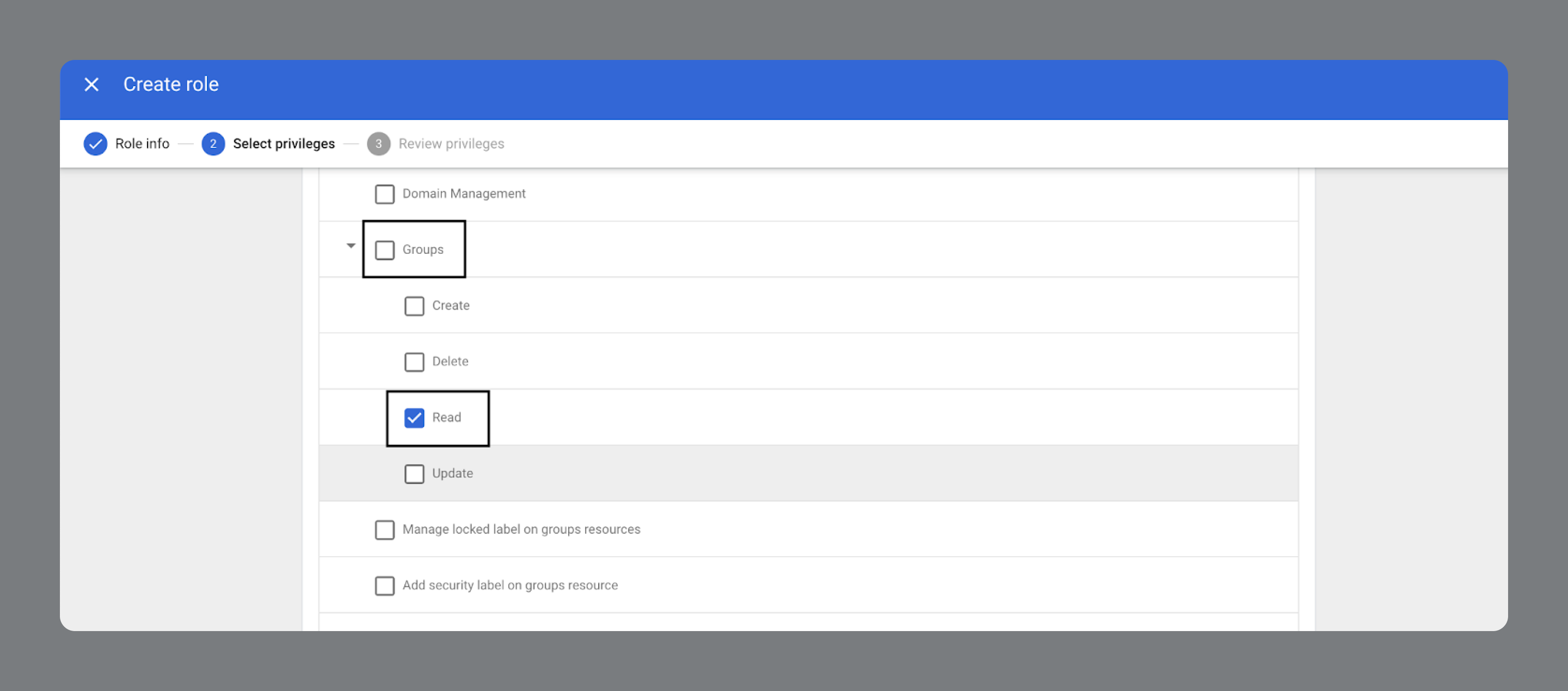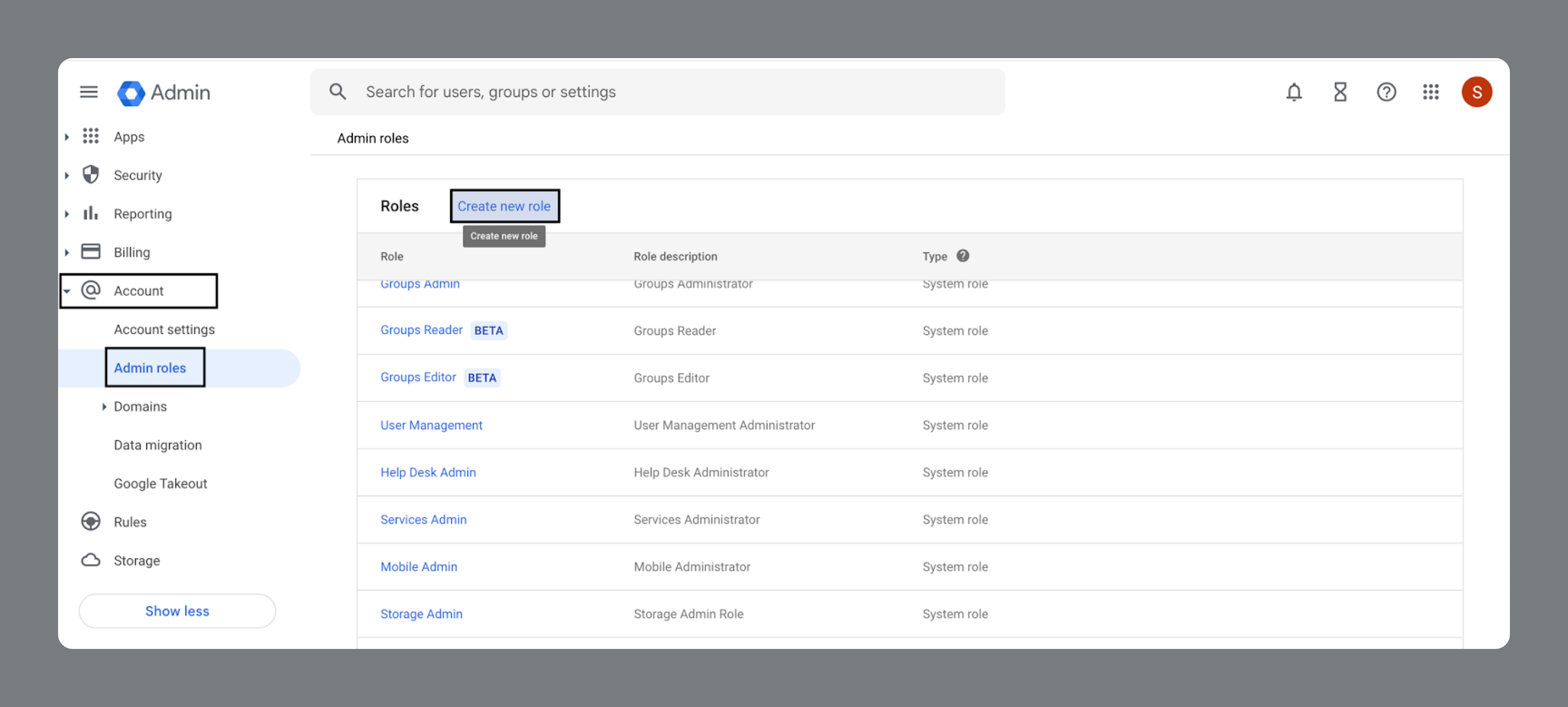 For more information on creating a role, please refer to the following documentation -Create, edit, and delete custom admin roles - Google Workspace Admin Help