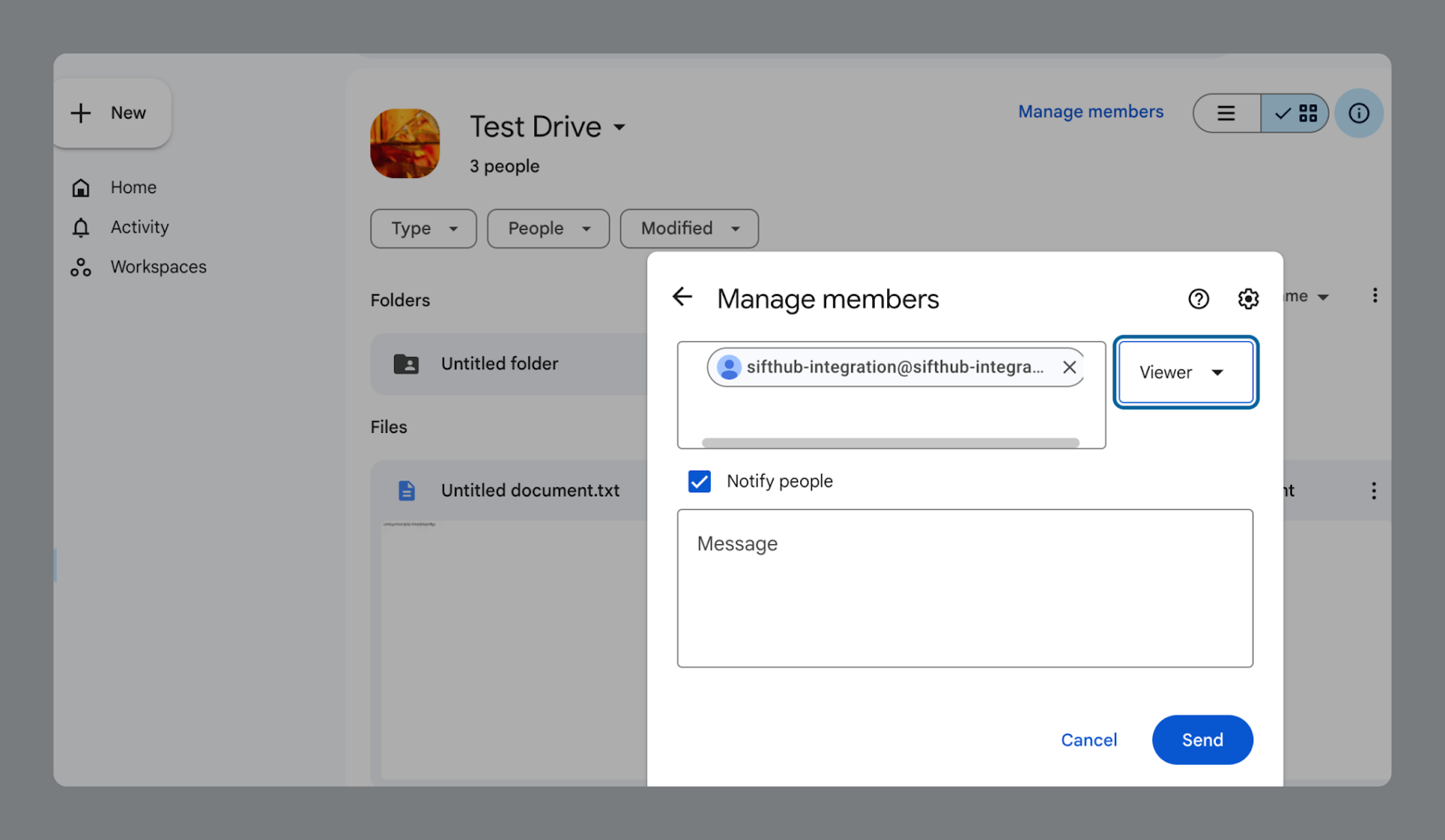 - To allow SiftHub Platform access to an entire Shared Drive, make sure you add the Service Account to the Drive with a ‘Viewer’ access or more