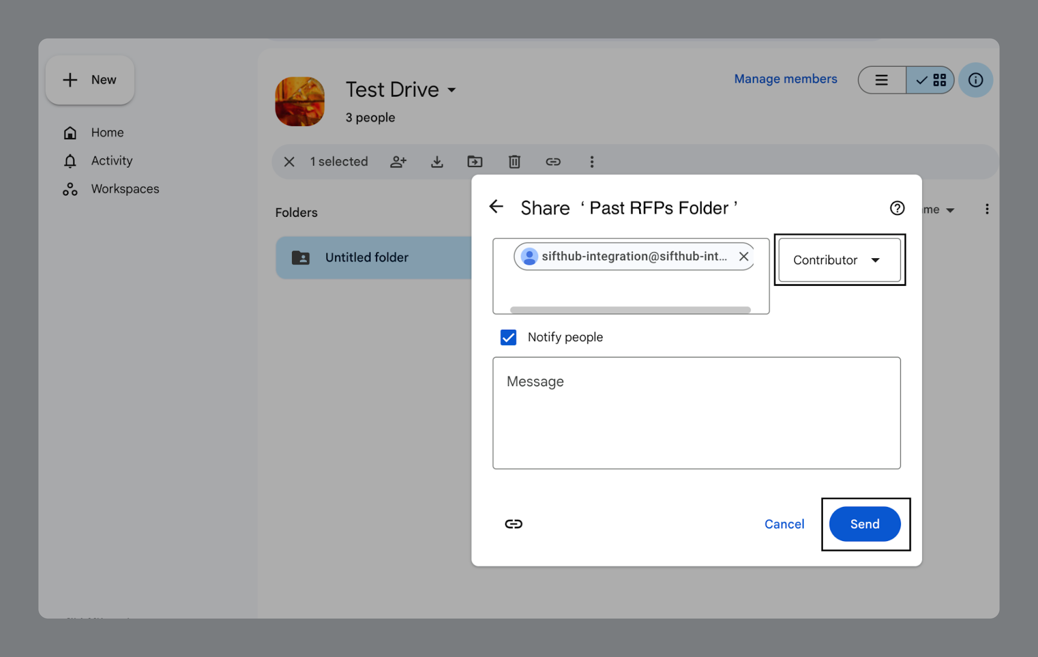 - To allow SiftHub Platform access to a folder within a Shared Drive, make sure you add the service account with a ‘Contributor’ access or more