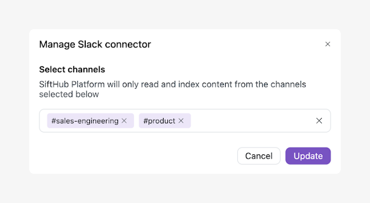 This way, SiftHub only reads and indexes the content from channels you explicitly allow it to access.