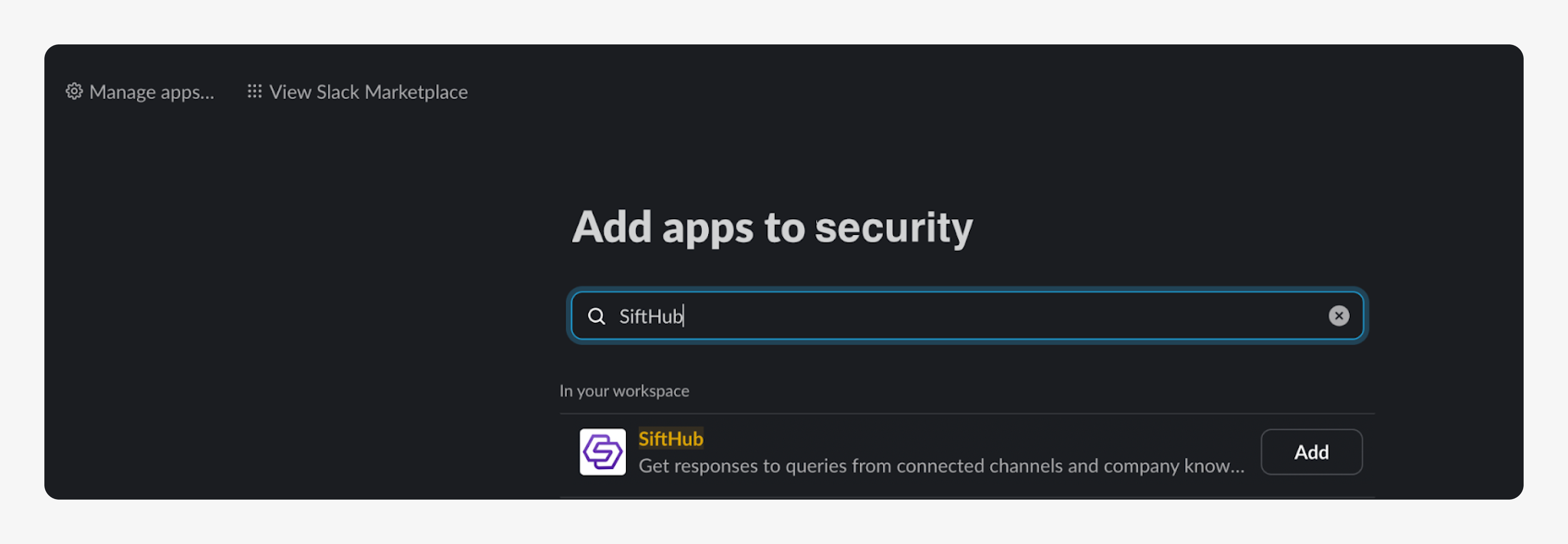 - Slack Workspace Admin access: To install the SiftHub app Slack app in the workspace