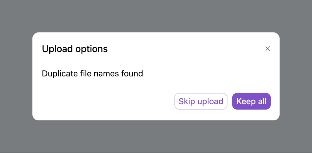 - Keep both: The duplicate document(s) will be uploaded with a version number added