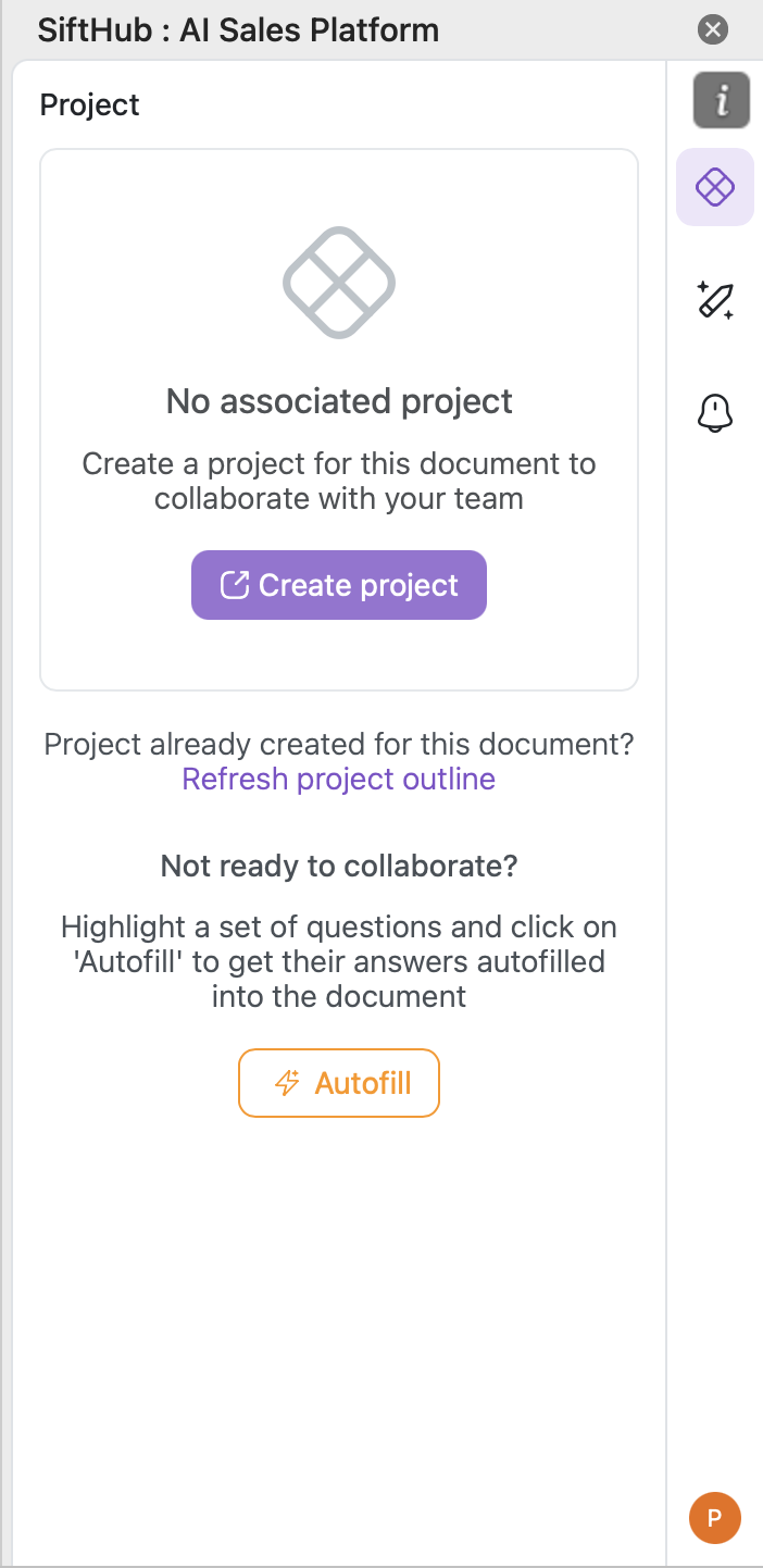 Creating a Project from the MS Add-in