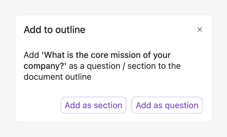 Note: Adding sections or questions to the outline in a Google Doc project is not supported currently