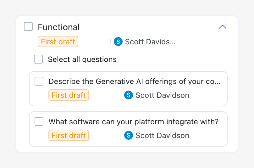 - Sections: These correspond to the headers or main categories of the primary document (e.g., sections of an RFP or similar structured documents).