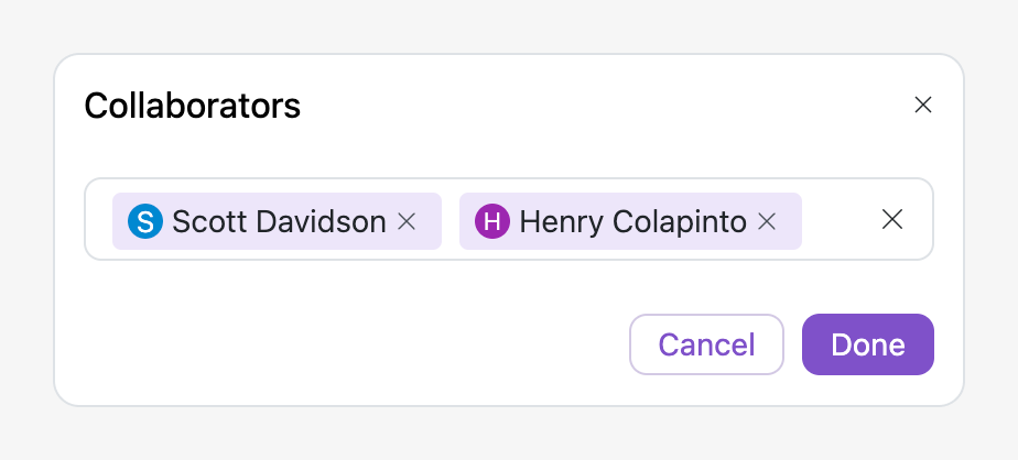 Click the Collaborators icon in the top-right to add or remove team members and manage their document access permissions.