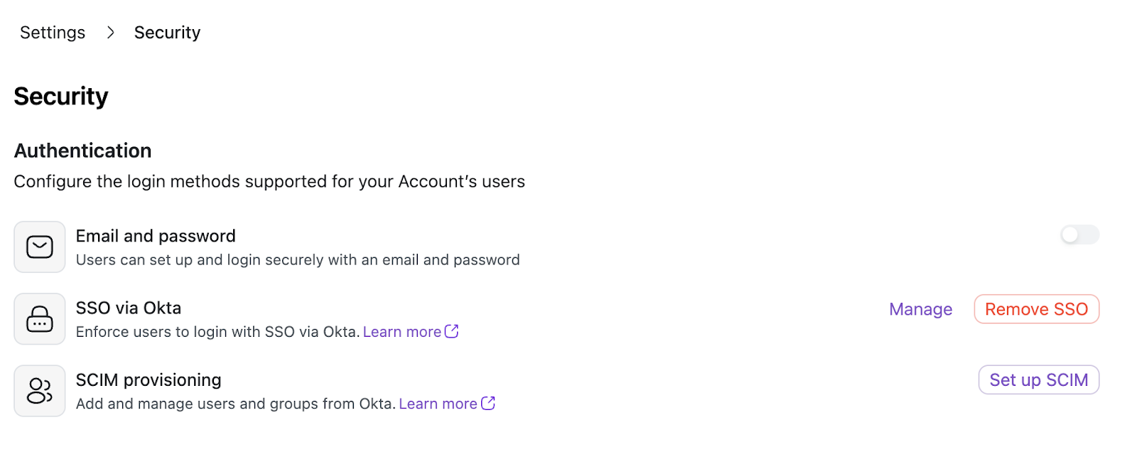 While you can implement SSO without SCIM, we recommend using both for complete user lifecycle management. Here's what happens with SSO alone: