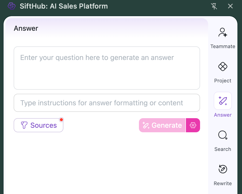 Collections: Collections are SiftHub’s solution for organizing your Repository into categorized sets of vetted content. Users can choose among Public Collections for their organization to configure the sources tapped for answer generation.