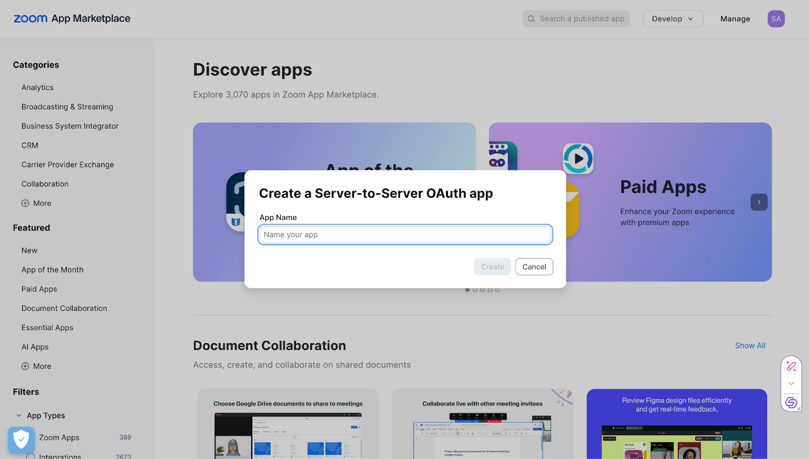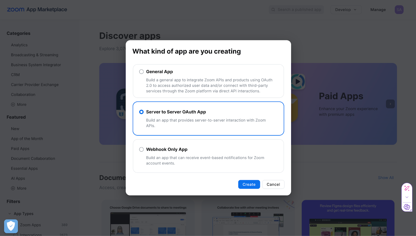 - After Clicking on Build app, Select Server to Server OAuth App and then click create.