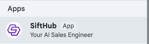 When you install the app on behalf of your organization, the SiftHub app appears within the users direct messages panel. After you install the app, it can take up to 24 hours for the app to appear in users’ direct messages panel.