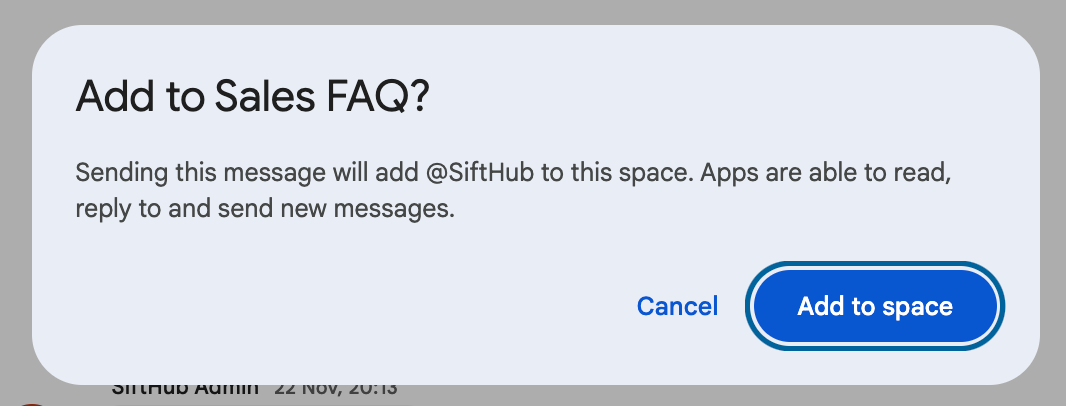 Add the SiftHub app to a space, allowing users to interact with it directly within a space conversation.