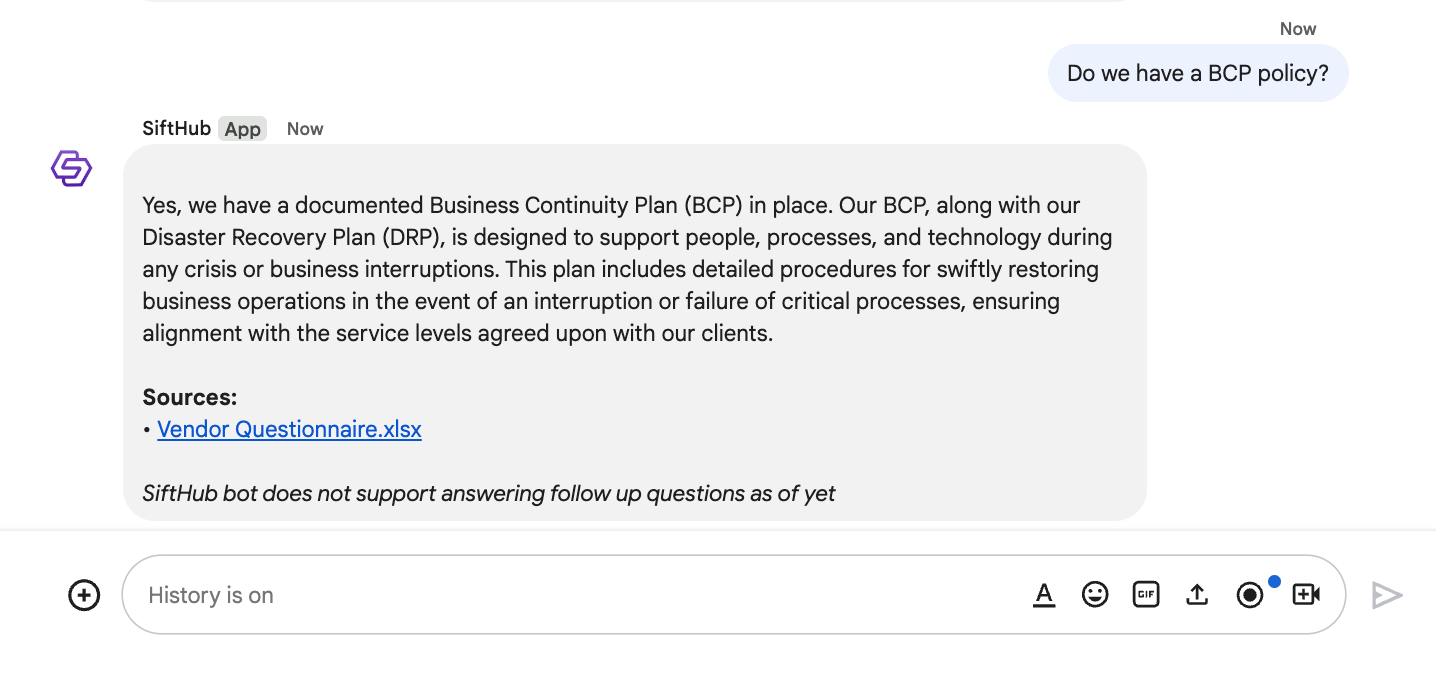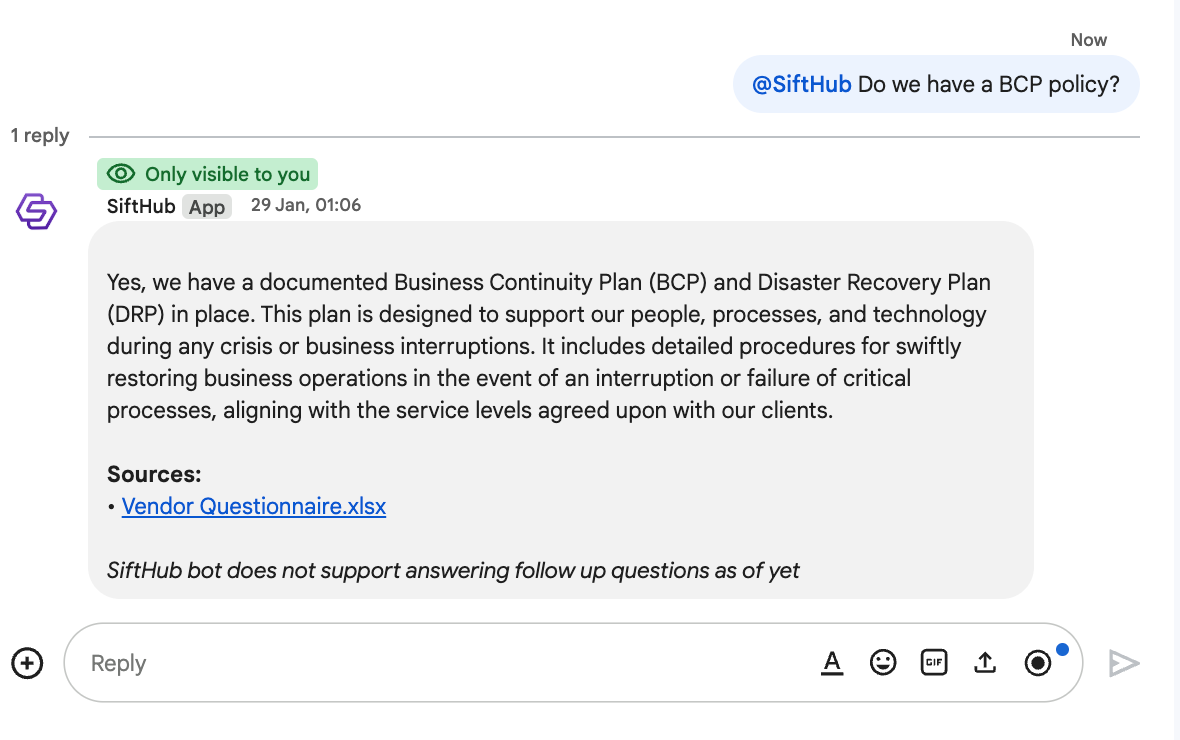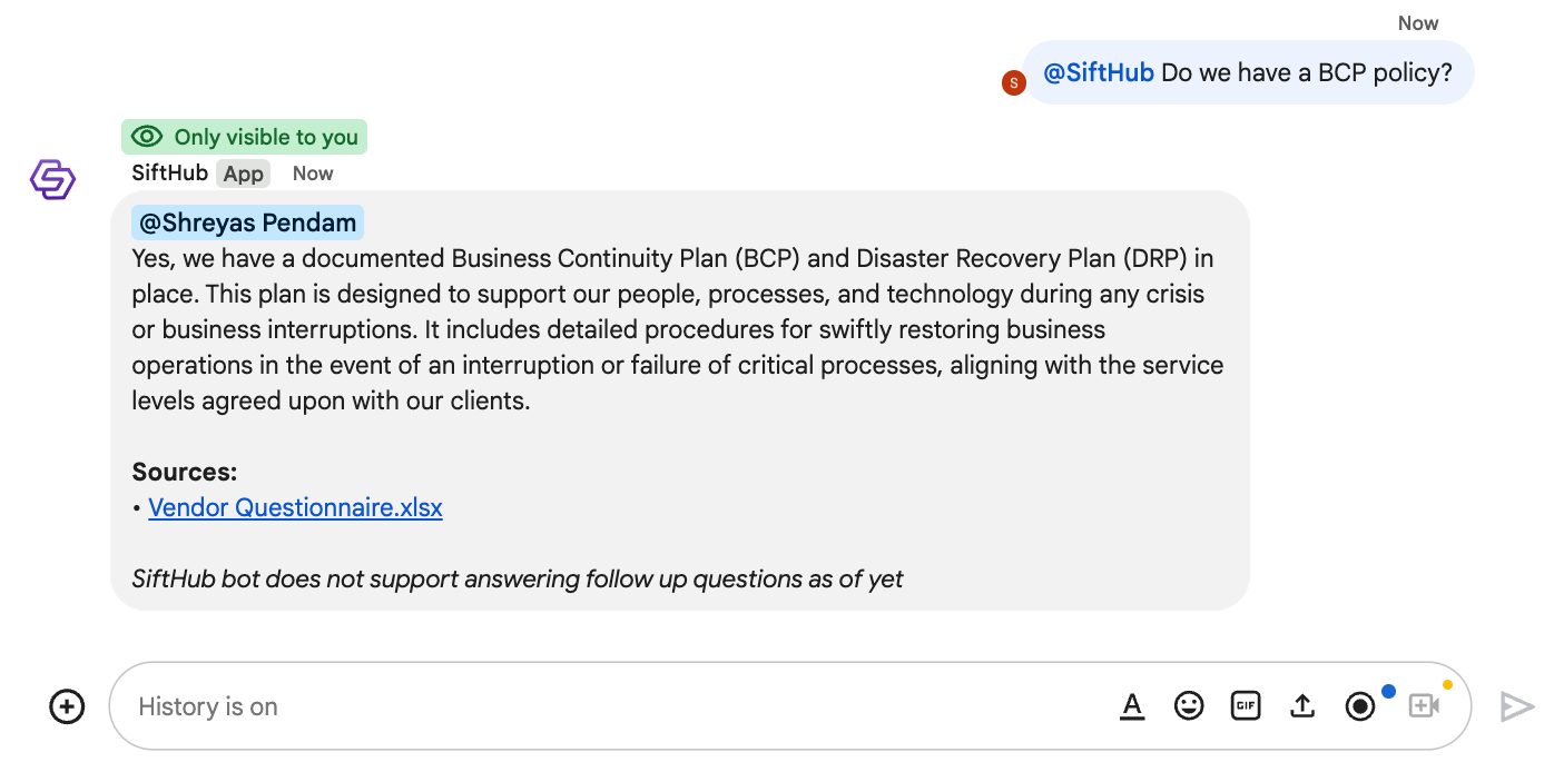 a. Type in @SiftHub in the chat box and press Enter.