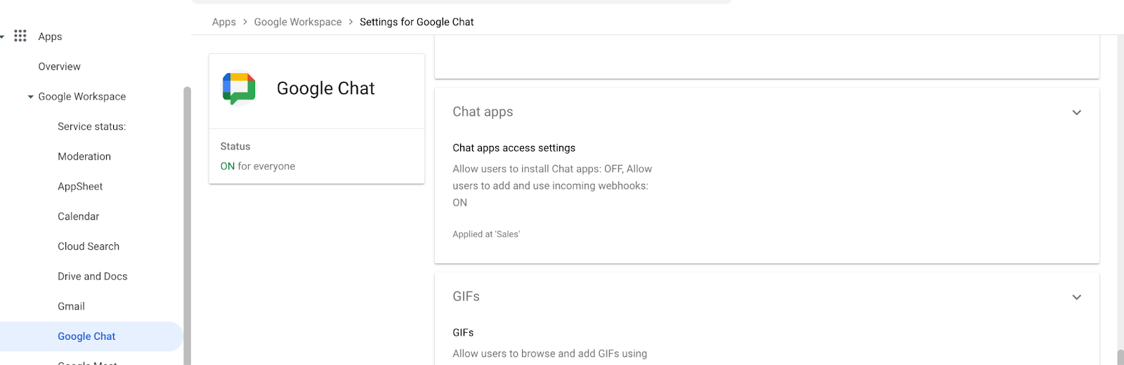 - In the Admin console, go to Menu > Apps > Google Workspace > Google Chat > Chat Apps.