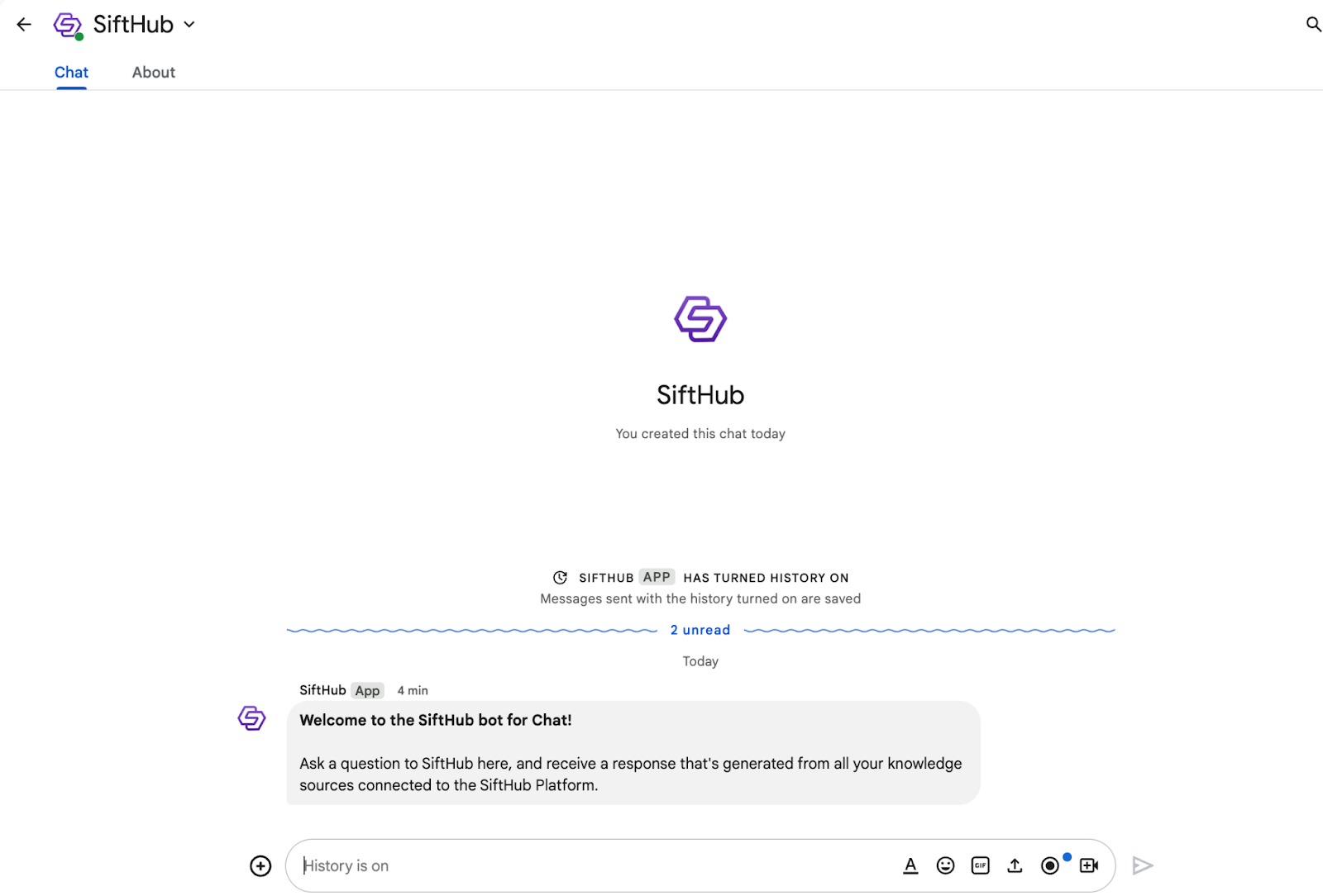 - Once installed, the SiftHub app will appear in the chat list.