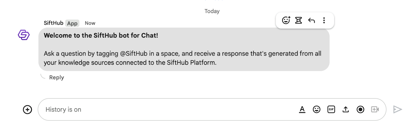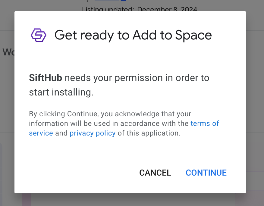 Welcome to your guide for setting up the SiftHub Bot for Google chat. Follow the steps below to install and configure the bot.