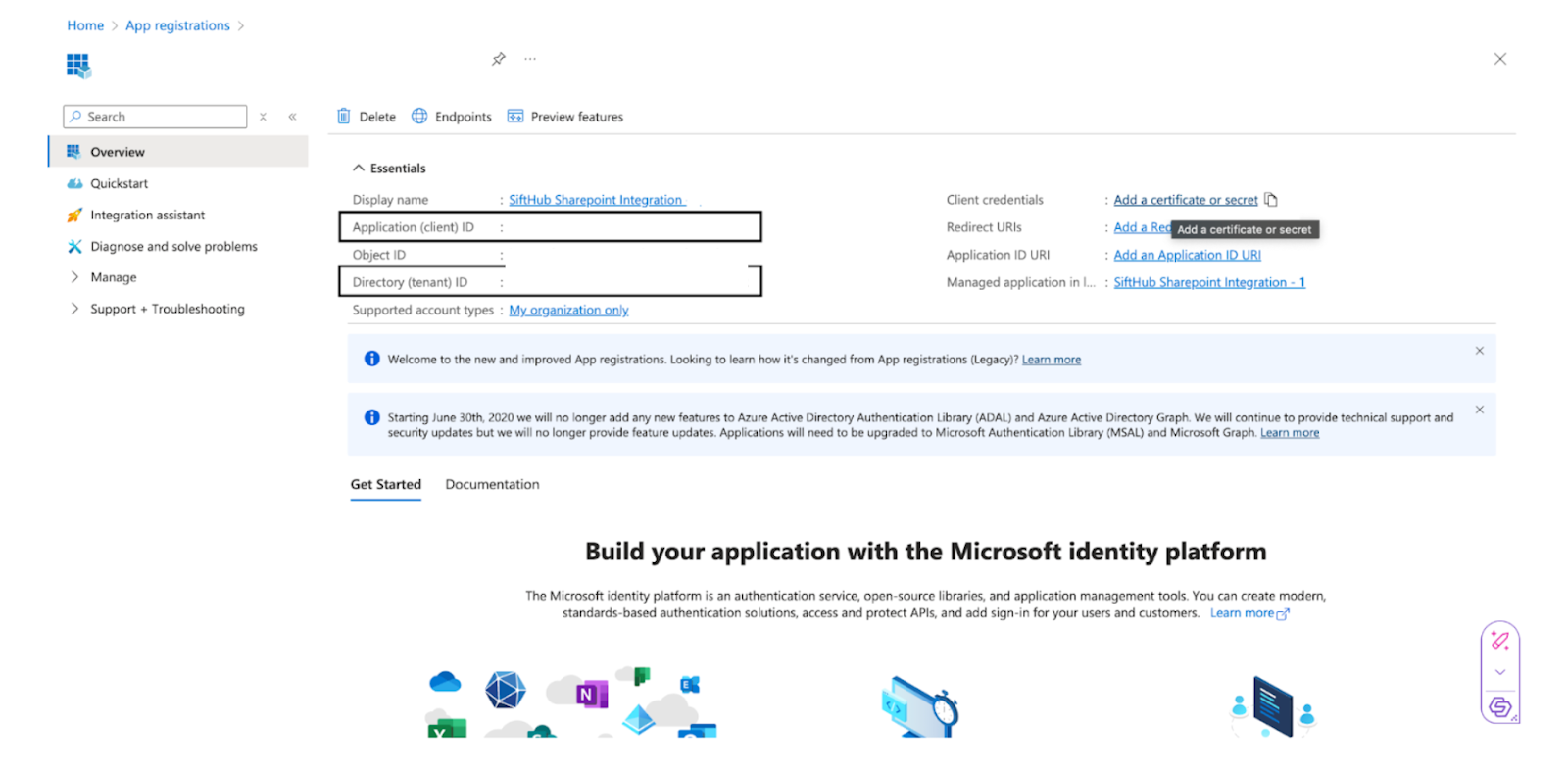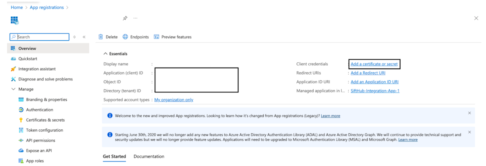 The following details need to be shared with your SiftHub Customer Success Manager once the Azure App with required permissions is set up: