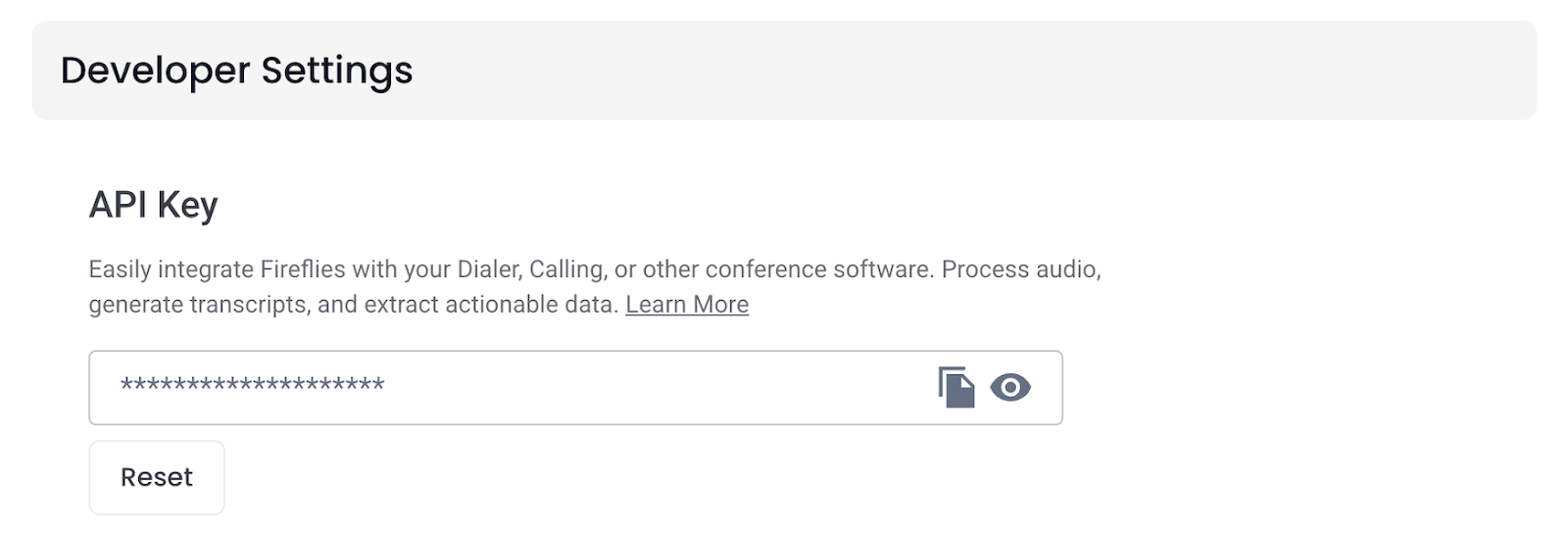 To enable this Connector, you will need to generate a Fireflies.ai API Key and share it with your SiftHub Customer Success Manager. Ensure you are the account Admin of your Fireflies account before you begin the setup, or contact the Admin for the same.