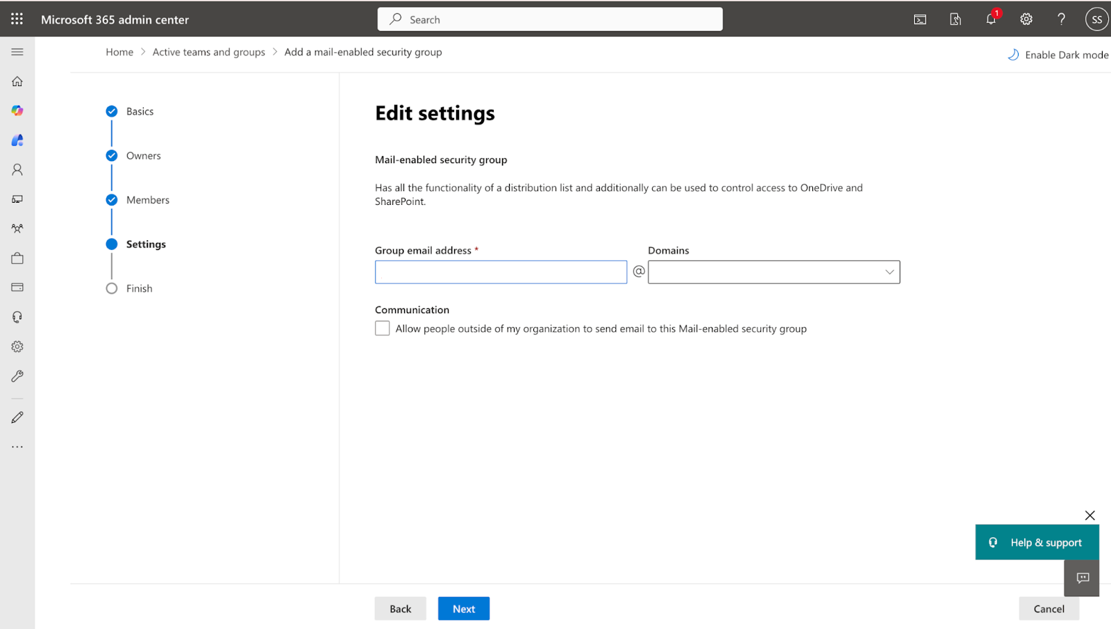 Alternative Step 2: Mail-Enabled Security Group Setup (Optional)