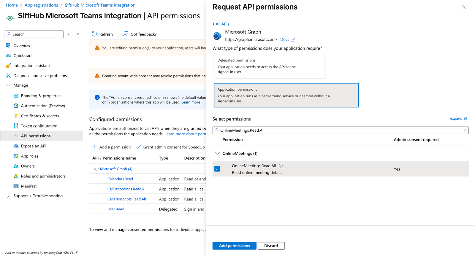 - CallTranscripts -> CallTranscripts.Read.All: Required to read transcripts generated during calls and meetings.