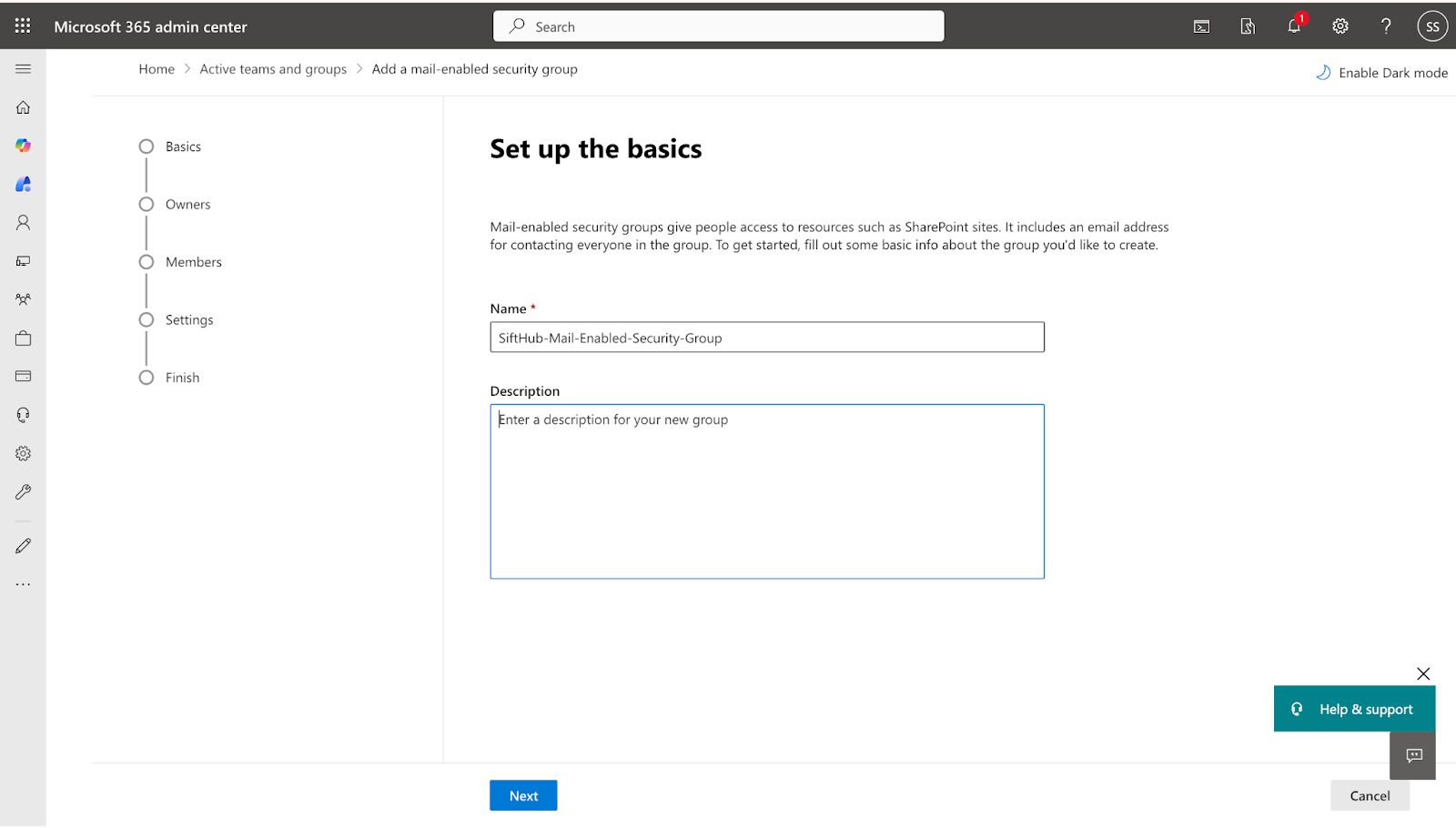 - Name: Enter a clear name, e.g., SiftHub-Mail-Enabled-Security-Group.
