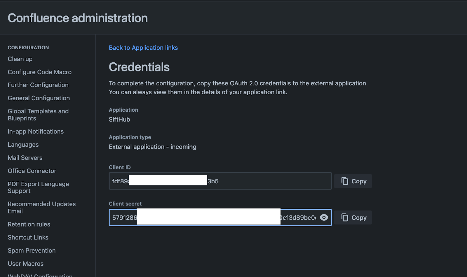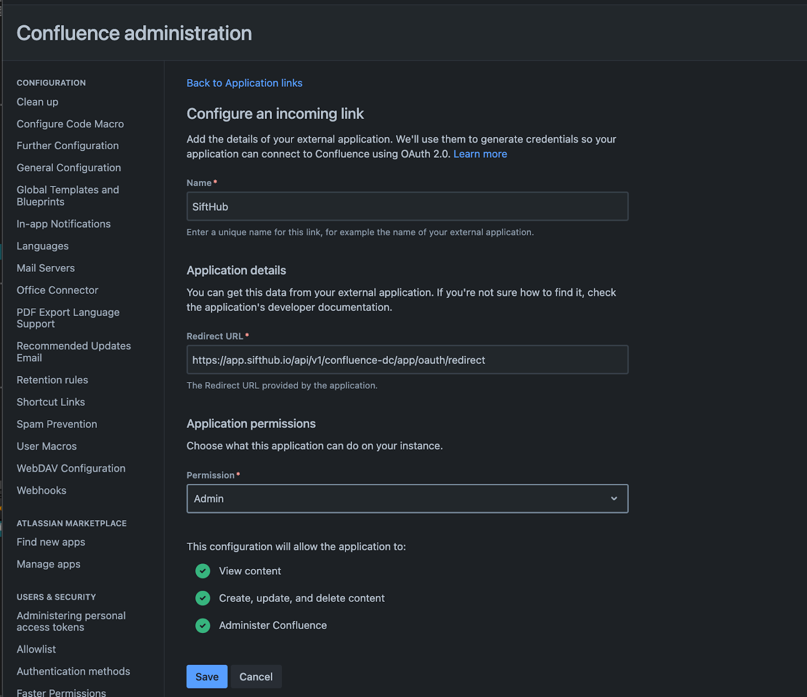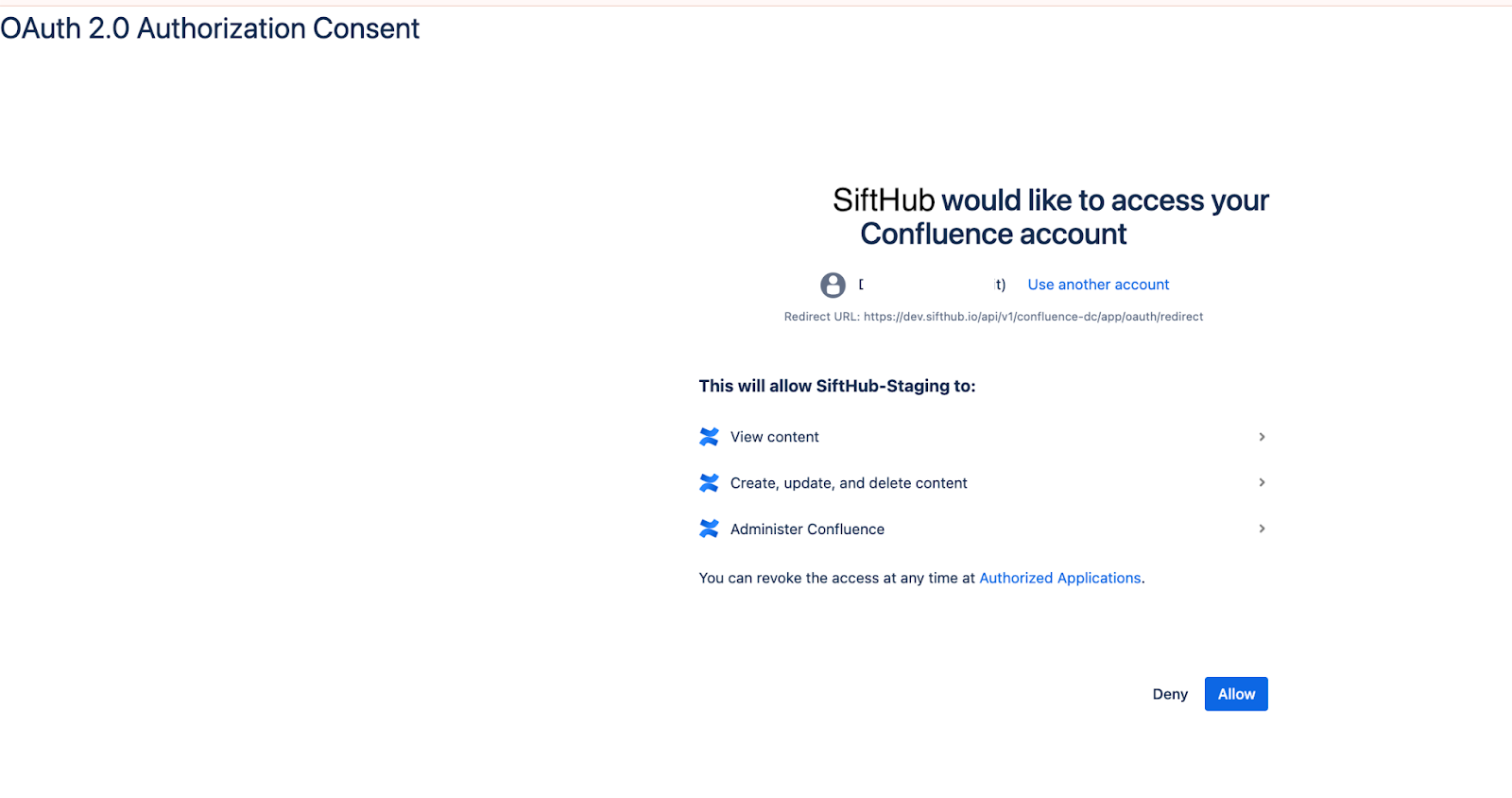 Redirect url - https://app.sifthub.io/api/v1/confluence-dc/app/oauth/redirect