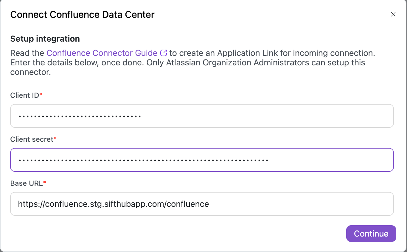 Step 2: Activate Confluence Data Center Connector in SiftHub